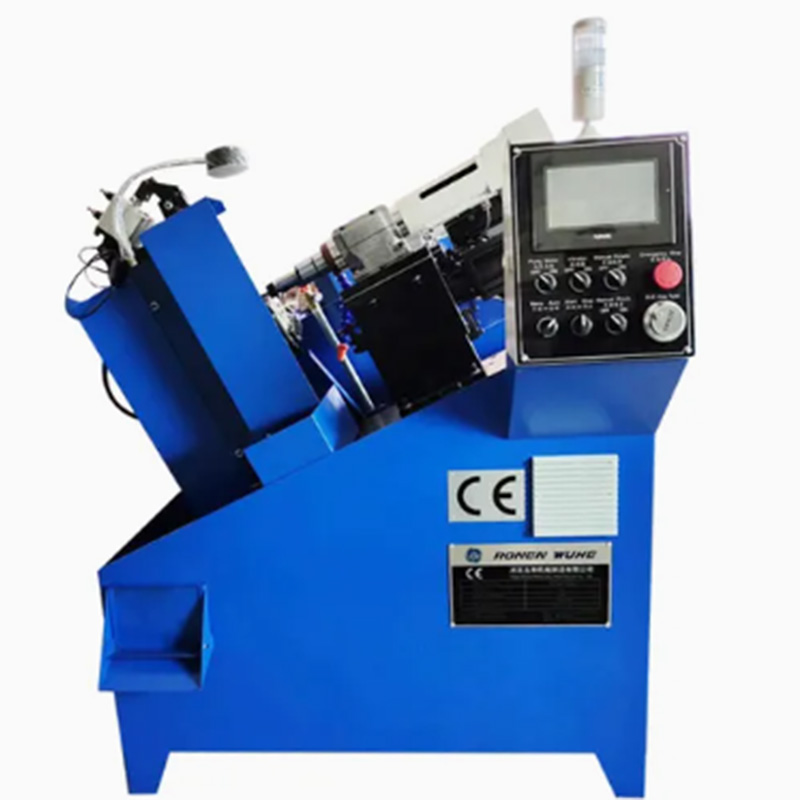 ຂະບວນການເຮັດວຽກຂອງເຄື່ອງຈັກກະແສໄຟຟ້າແມ່ນກົງໄປກົງມາ. ອຸປະກອນການເປົ່າແມ່ນຖືກຈັດໃສ່ໃນເຄື່ອງໃຫ້ອາຫານ, ເຊິ່ງຈະຂົນສົ່ງບ່ອນຫວ່າງໄປຫາຕໍາແຫນ່ງທີ່ກໍານົດໄວ້. ຫຼັງຈາກນັ້ນ, ທໍ່ນັ້ນຈະເນົ່າເປື່ອຍແລະເຈາະເຂົ້າໄປໃນຂຸມຂອງບ່ອນຫວ່າງເພື່ອສ້າງກະທູ້. ແກ່ນທີ່ປຸງແຕ່ງແມ່ນຖືກຍູ້ອອກ.